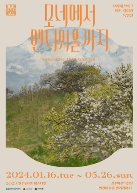전시 장소는 경주 예술의 전당 알천미술관에서 한수원아트페스티벌 '모네에서 앤디 워홀까지' 특별전